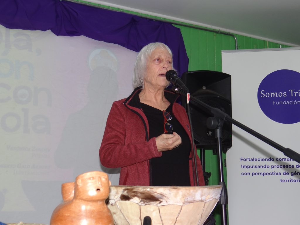La artista local Lucía Orellana, cultora autodidacta y creadora de Arte Lu introdujo a Verónica Zondek, quien dialogó con las y los estudiantes sobre el poder de la poesía y la lectura: