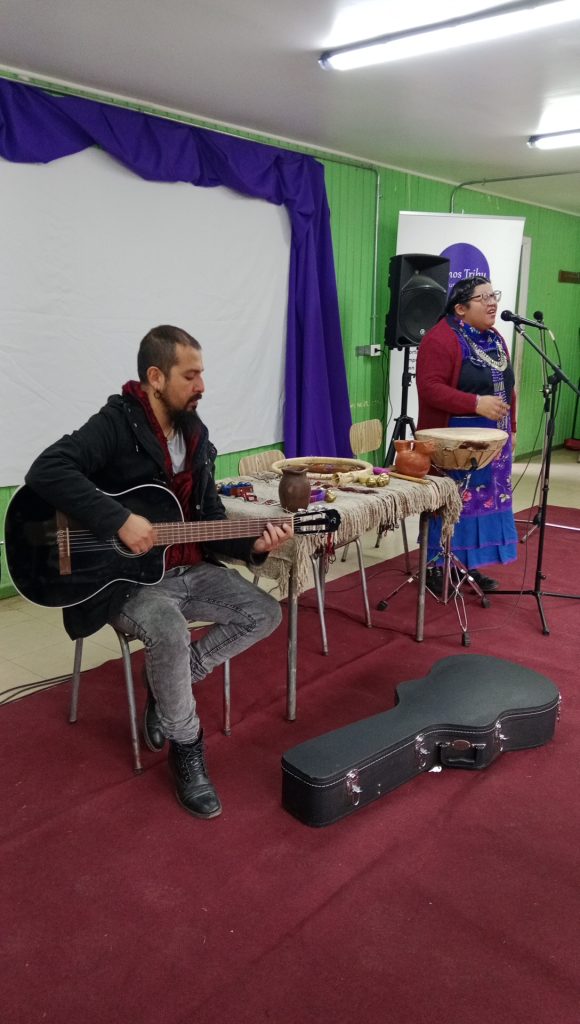 La artista Paola Ñanculef, profesora en educación intercultural y cantautora mapuche, acompañó la presentación con una interpretación musical que emocionó a todos los presentes: