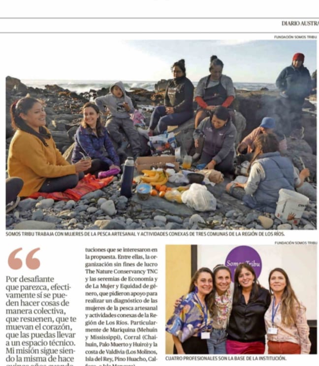 Implementamos un programa de acompañamiento e intervención social y socio afectiva con mujeres de la pesca artesanal y actividades conexas de la región de los Ríos con el propósito de promover procesos de empoderamiento femenino que les permita identificar y desarrollar su capacidad de agencia para generar transformaciones en la calidad de vida de quienes son parte de este proceso, así como para disminuir las brechas de género que se presentan en esta área. Esta iniciativa se lleva a cabo mediante la realización de sesiones y espacios de encuentros con una metodología innovadora, circular y participativa. Nos reunimos mensualmente en cada uno de los territorios costeros (Valdivia, Corral y Mariquina) para compartir herramientas técnicas y de desarrollo socio-afectivas que contribuyen al empoderamiento personal y colectivo de las participantes, así como de los territorios que habitan.